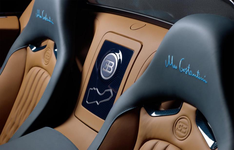 Niebieskie malowanie nadwozia edycji Meo Costantini nawiązuje do francuskich, wyścigowych barw i legendarnego Type 35. Na wielu elementach wnętrza, w całości pokrytego skórą, pojawiają się sygnowania Meo Costantini.