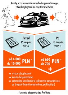 Jak szacują eksperci motoryzacyjni sieci ProfiAuto, dotychczas koszt przystosowania do ruchu prawostronnego samochodu popularnej, sprowadzanej z Anglii marki (Volkswagen, Skoda, Audi, Opel) wahał się w obrębie 4 – 10 tys. PLN. Niwelował on więc znacznie oszczędności, wynikające z niskiej ceny samochodu zakupionego na wyspach. Wchodzący właśnie w życie przepis, zezwalający na rejestrację w Polsce samochodów z kierownicą po prawej stronie sprawia, że „przestawka” kierownicy na lewą stronę nie będzie już wymagana. Według szacunków ProfiAuto, pojazd będzie można teraz przystosować do ruchu np. przeznaczając na to około 660 – 700 PLN (szacunek na podstawie modelu Opel Astra G 1998 – 2009). Pojawić się jednak mogą inne, niewymierne „koszty” jazdy z kierownicą po prawej stronie po polskich drogach.