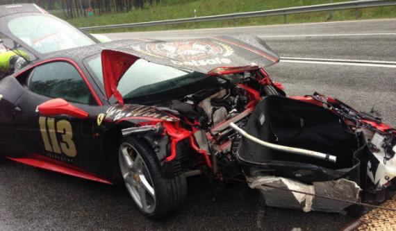 Ferrari 458 Italia jest drugim rozbitym autem podczas tegorocznego Gumball 3000.