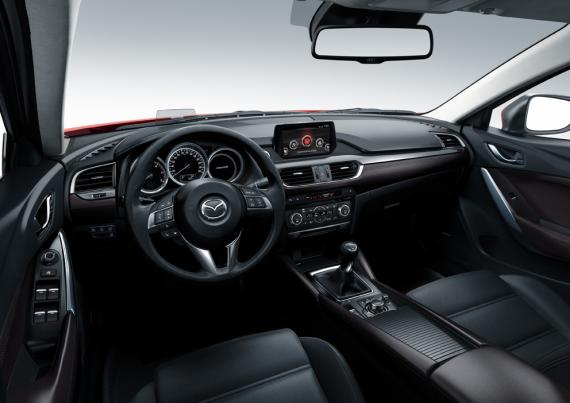 Mazda6 2015 otrzymuje szereg udoskonaleń. Zdecydowane korekty form konsoli wskaźników za kierownicą oraz konsoli środkowej składają się na nowy, świeży wygląd wnętrza. Łączy ono koncepcję kokpitu zorientowanego na kierowcy, uwzględniającą ergonomię unikalnego, stosowanego przez Mazdę wyświetlacza centralnego, z przestronnym otoczeniem dla pasażera z przodu. Szczególną uwagę zwrócono także na zmniejszenie odstępów pomiędzy poszczególnymi elementami w celu osiągnięcia wrażenia jednolitości i spójności kabiny. Wiąże się z tym znacznie wyraźniejszy efekt odczuwalnej jakości, właściwy dla flagowego modelu w ofercie produktów Mazdy.