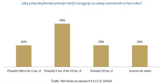 W sumie dług na ten cel planuje zaciągnąć blisko 164 tys. Polaków. Pożyczonymi pieniędzmi 60% osób zamierza sfinansować całość kosztów zakupu auta, a 40% osób większość wydatków. Niespełna dwie trzecie (60%) osób planujących zadłużyć się na samochód chce zaciągnąć kredyt lub pożyczkę do kwoty 10 tys. zł, a zaledwie co piąty (20%) – powyżej 10 tys. zł.